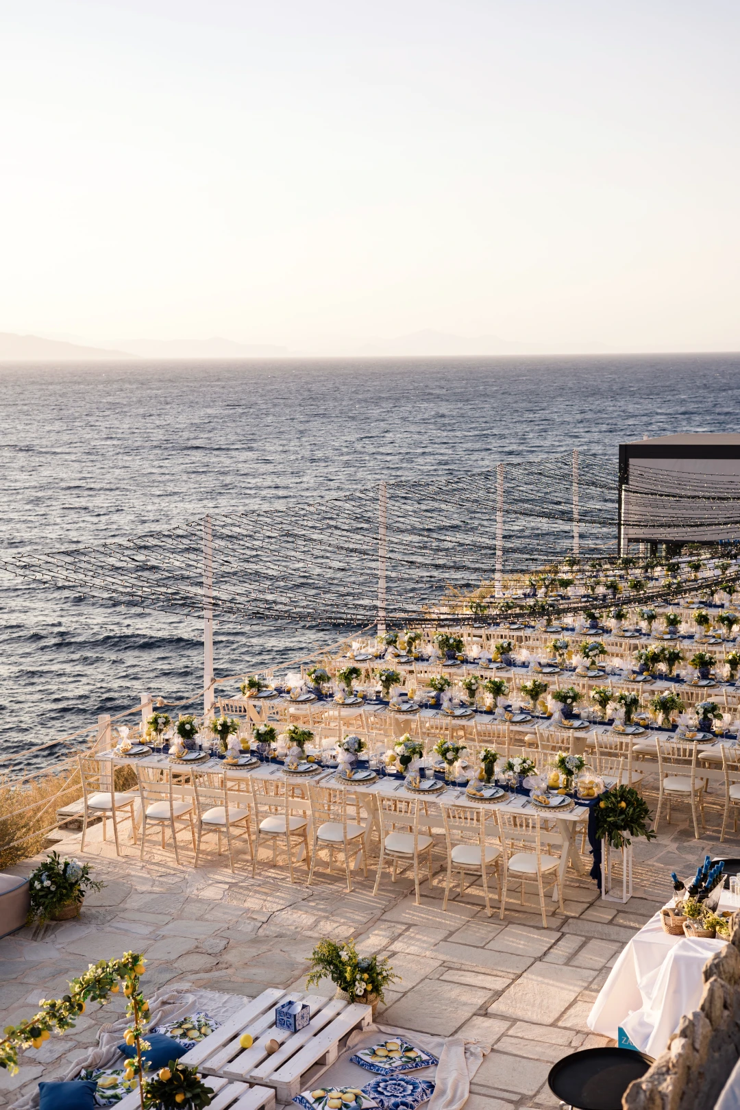 The villa can be transformed depending on the event and your requirements, creating a high end and unforgettable reception. The luxurious furnishings and decoration editing add extra touches of flash and style, taking off the super privileged location to a fairytale setting.