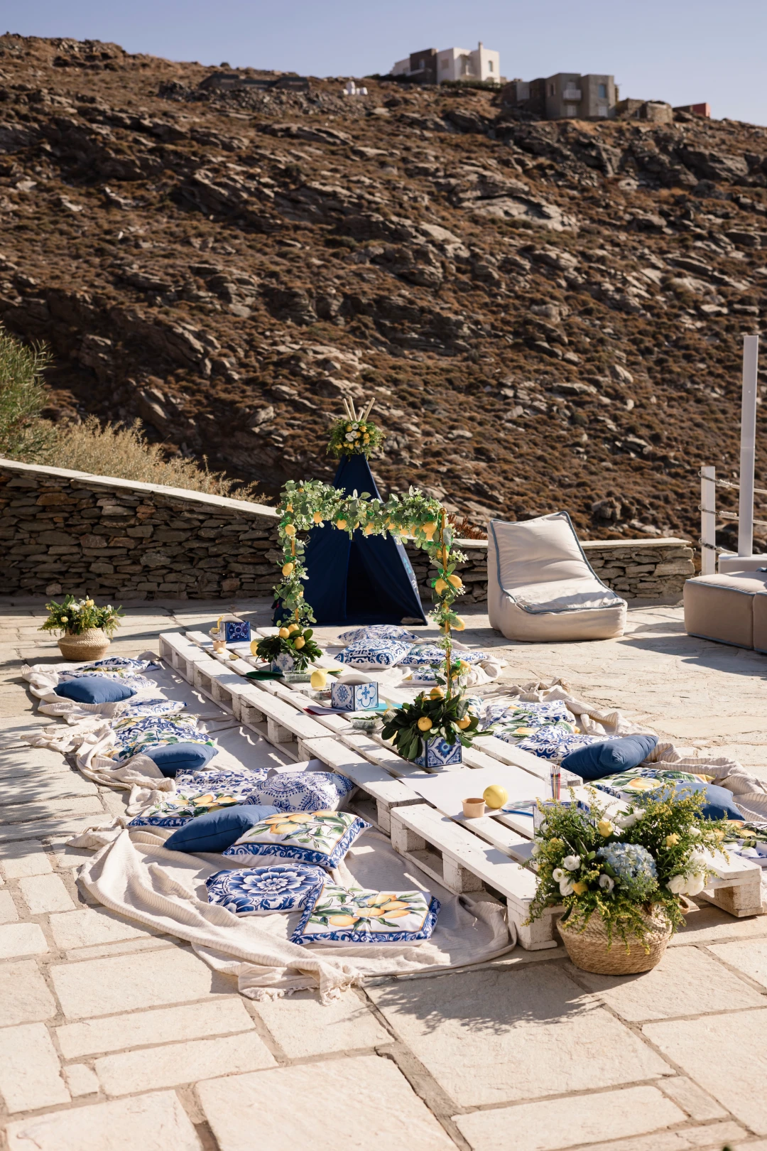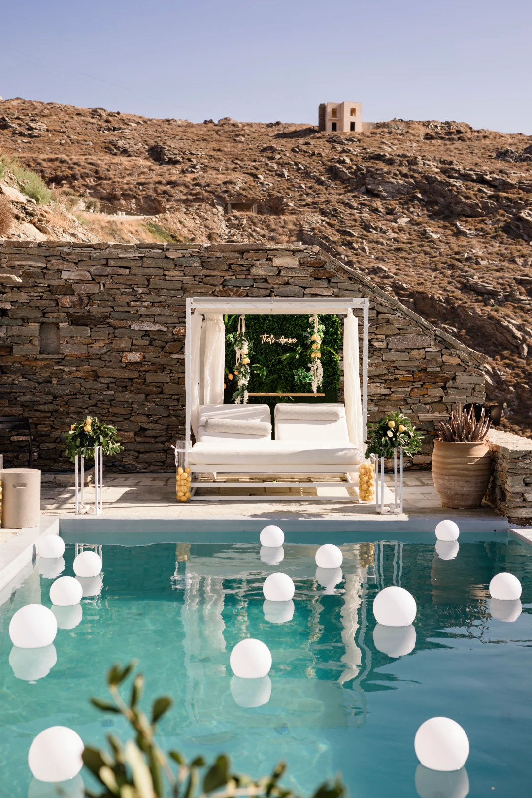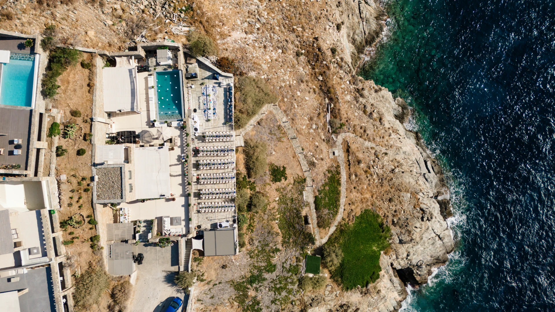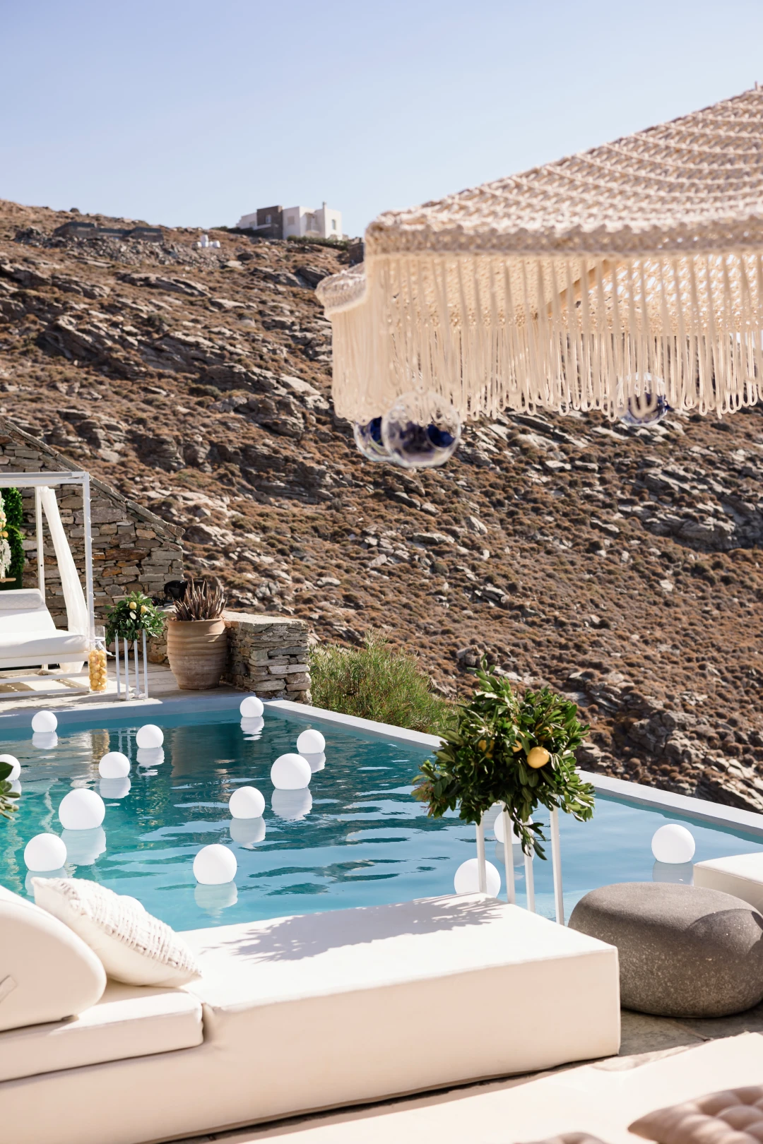 The outdoor space’s beautiful design reflects the local vegetation and landscape rising just 50m above sea level with only a few private steps leading you down to the crystal waters of a pebble cove.